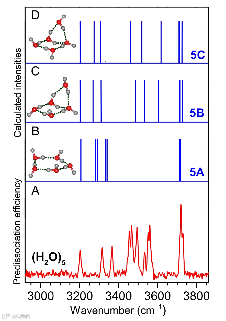 来自清华大学的李隽团队计算了水团簇的各种稳定结构和红外光谱,发现理论与实验高度吻合。