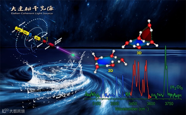 研究结果表明,在有限温度条件下(H2O)5的二维和三维结构可以共存,三维立体结构的形成是引起红外光谱显著变化的根本原因。这突破了科研人员长期以来对最小水滴是六个水分子团簇的传统认知,为揭开水的微观结构演化的奥秘提供了新的思路。