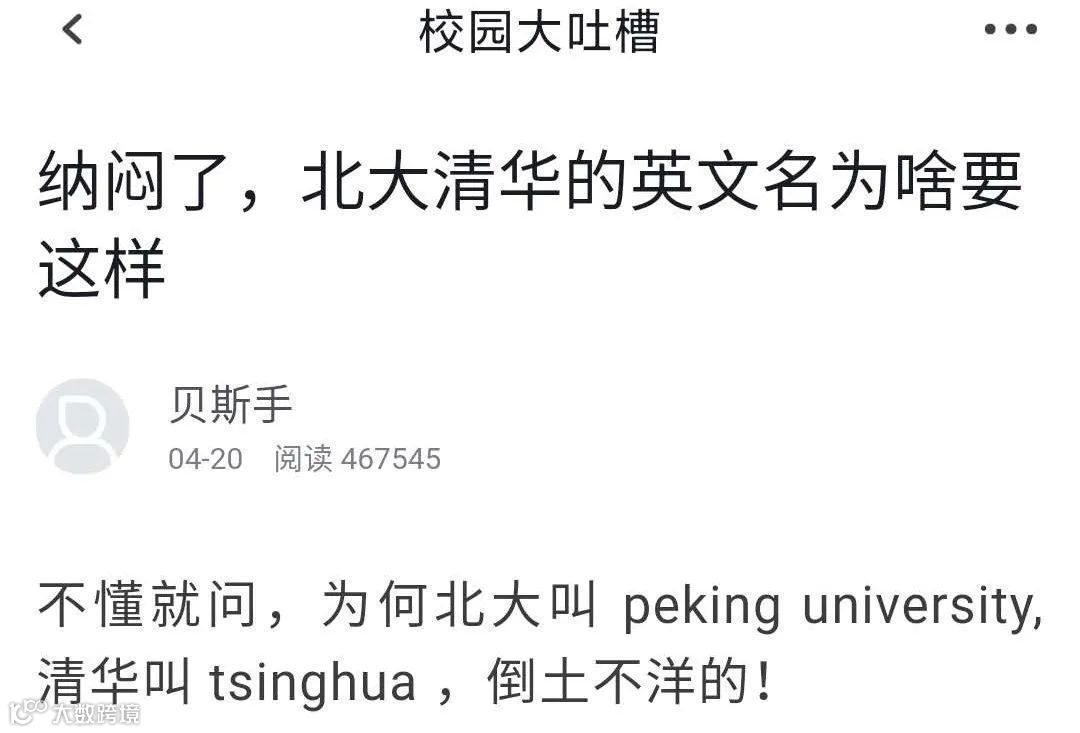 这个问题提得许多人一愣:平时没觉得“Peking”和“Tsinghua”有啥不妥,但一提出来,又感觉好像确实有哪里不对……