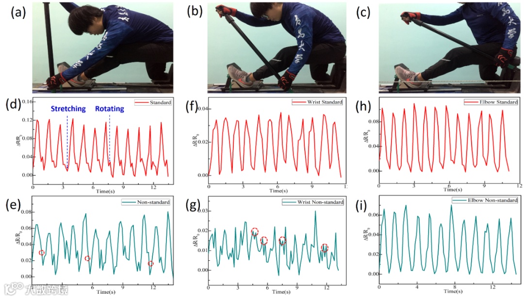 图3 应变传感器用于龙舟队员训练时动作监测分析