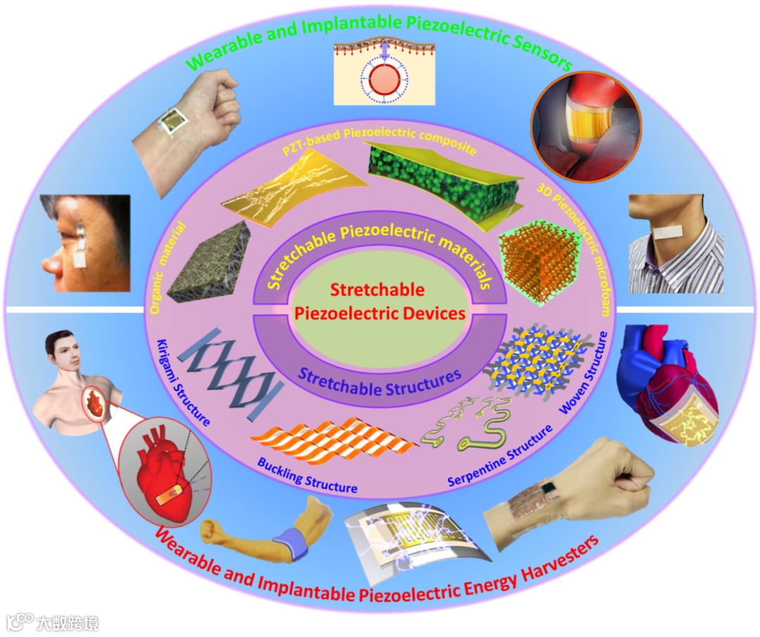 近年来,可穿戴和植入式医疗电子器件得到了快速的发展,实现了血压、血糖、心率等关键生理参数的实时不间断测量,这为精准数字医疗和远程医疗技术的进步提供了保障。对于这些医疗器件而言,除了体积小、重量轻等特点外,器件的可延展性和电能供应是使得这些器件成功应用于医疗领域的关键所在。然而,传统电池的大体积和有限寿命等是制约用户体验、器件性能和长时间持续工作的主要瓶颈。为此,科研人员在可延展压电能量收集方面做了大量的研究工作,成功开发出具有较高压电系数的可延展压电材料;也通过结构设计,将可延展结构与具有较高压电系数的压电材料结合开发出同时具有优异的压电和可延展性能的能量收集器件,极大的解决了由于传统电池带来的困扰和技术瓶颈。