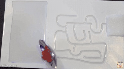 这样设置好以后,只要在迷宫入口方式一滴矿物油(或二氯甲烷)和2-己基癸酸的混合液,这个幽灵液滴就可以自动走迷宫了。