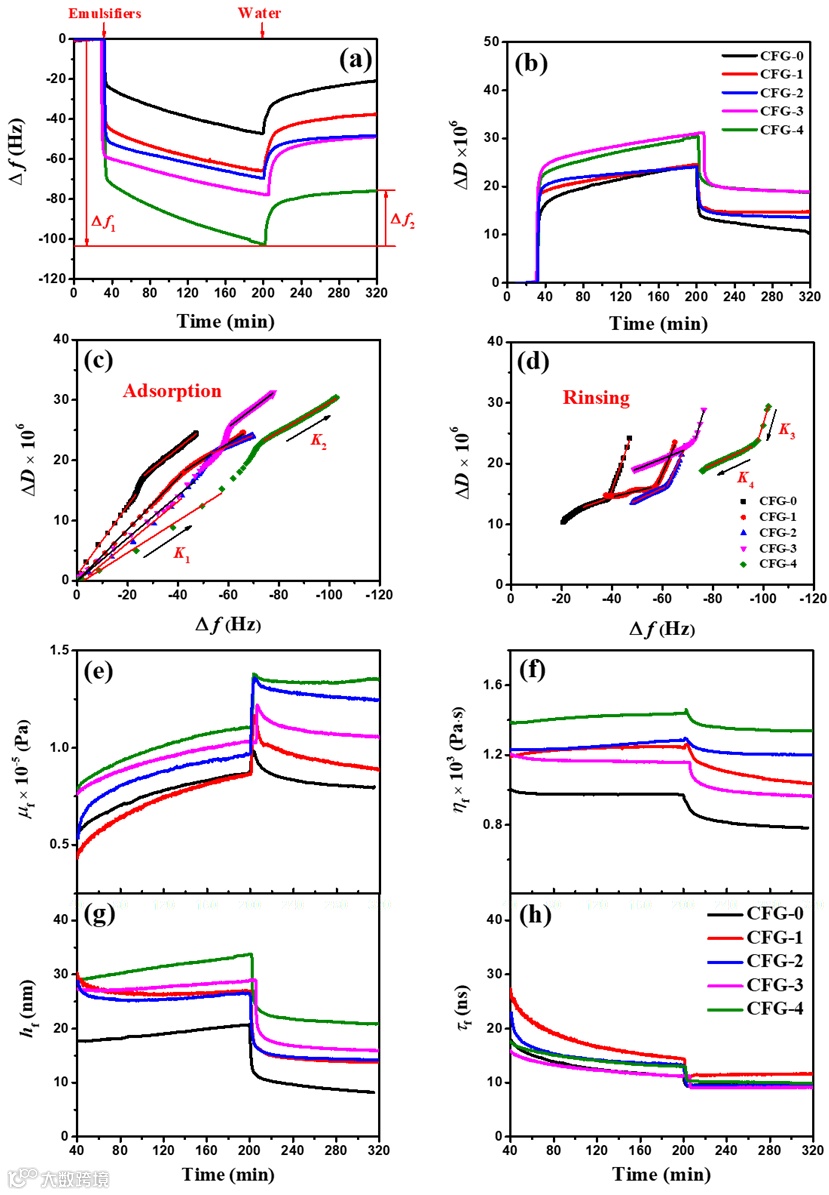 图3. QCM-D研究OSA-CFG在油-水界面的吸附行为示意图。