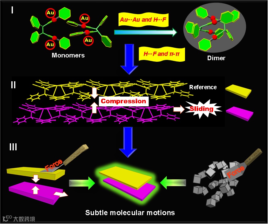 图3. 力诱导固态分子运动和发光的机理。