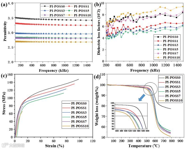 图1. 低温固化PI-POSS 纳米复合材料介电、力学及热学性能
