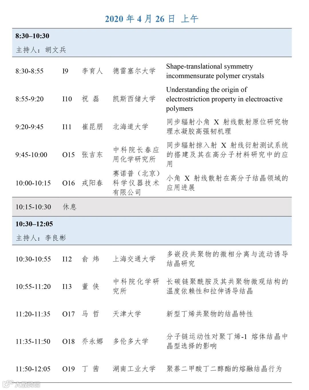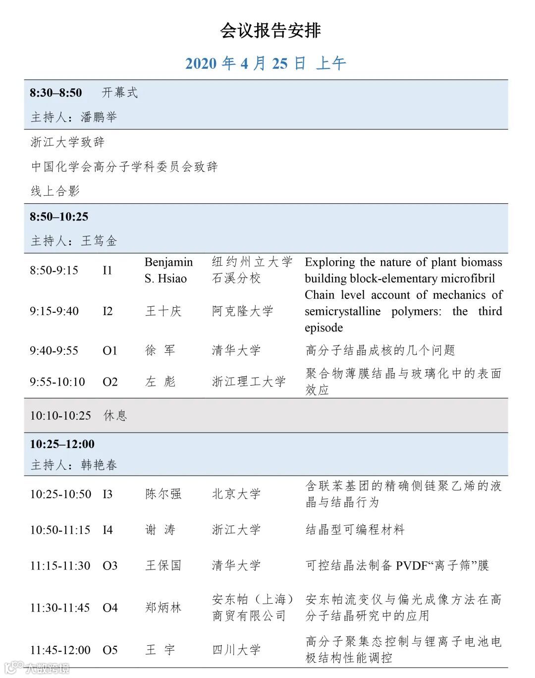 本次研讨会由中国化学会高分子学科委员会与浙江大学共同主办,浙江大学化学工程与生物工程学院、化学工程联合国家重点实验室(浙江大学)承办,由南京大学胡文兵教授、中国科学技术大学李良彬教授、中国科学院长春应用化学研究所门永锋研究员担任会议主席。本次研讨会将邀请国内高分子结晶、高分子物理、高分子加工等领域的专家学者,对高分子结晶理论、应用及表征技术等方面的前沿问题进行研讨。