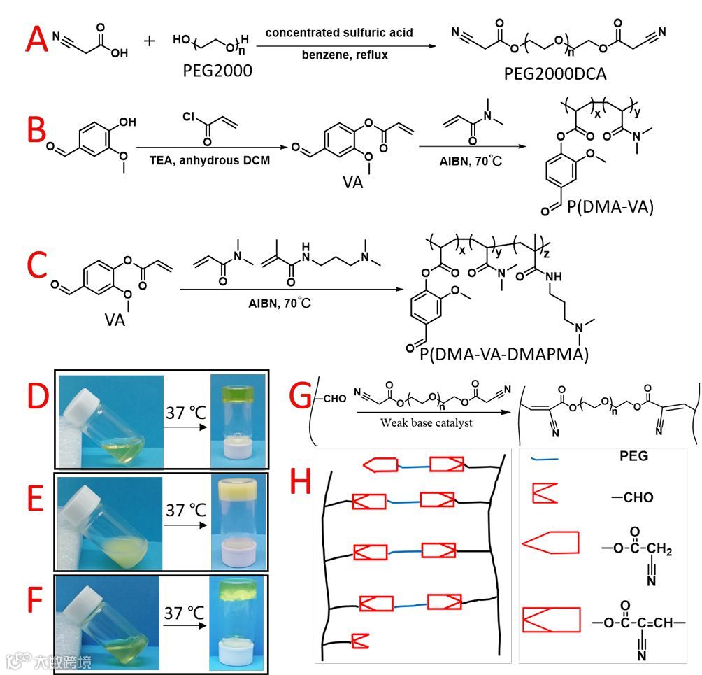 图1.基于Knoevenagel缩合反应的动态水凝胶