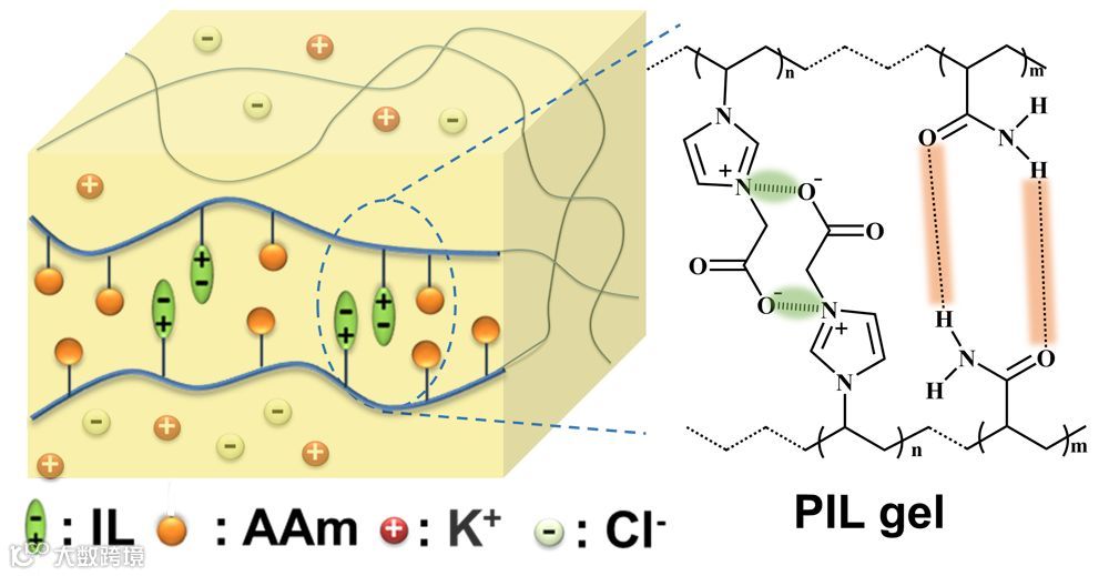 图1. 聚离子液体抗冻水凝胶的化学结构