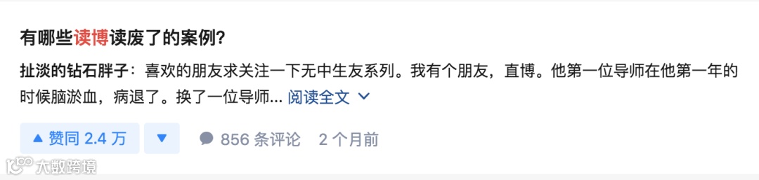 在知乎搜索“读博”,跳出来的是“读废了”的分享,高赞的回答里鲜有振奋人心的答案: