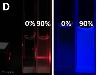 从图2A-D可以看出,随着支化度的增加, PCPMA聚合物在稀溶液和固态中的荧光强度均有明显的升高,溶液中量子效率从0.1%升高至4.3%。E图和F图则表明,超支化PCPMA的荧光发射具有明显的激发波长依赖性。