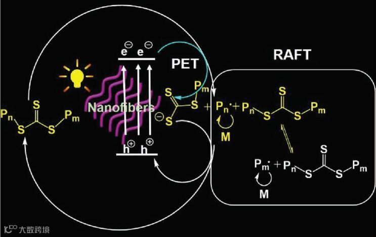 导电聚合物是一类具有优异的光化学和电化学性能的材料,其在电化学,燃料电池、太阳能敏化电池和光化学降解污染物等方面具有突出的表现。其中,基于长程共轭的导电聚合物聚(1,4-二苯基连二炔)(PDPB),不仅拥有良好的光学性能,且易制备,还能通过改变聚合度的方法调控带隙宽度,从而获得具有不同氧化还原能力的产物。最近,中国科学技术大学的尤业字教授团队以不同形貌/不同氧化还原能力的PDPB(模板法制备的具有纳米纤维结构的PDPB(PDPB-NF)和无模板法制备的无定型PDPB)为催化剂,在可见光驱动下,成功实现了丙烯酸酯和丙烯酰胺类单体的活性可控聚合反应。这项研究工作以“Polymer Nanofibers Exhibiting Remarkable Activity in Driving the Living Polymerization under Visible Light and Reusability”为题,在Wiley旗下的期刊Advanced Science发表了研究成果。