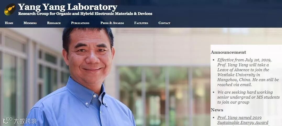 杨阳教授,是太阳能电池行业“大牛”,最近刚刚获得了2019年可持续能源奖。2016年被汤森路透评为“世界最具影响力科学家”之一。他执教23年,截至2018年4月,已先后培养出42名博士和38名博士后,其中26位已成为大学教授,目前指导的在读博士生有16人。
