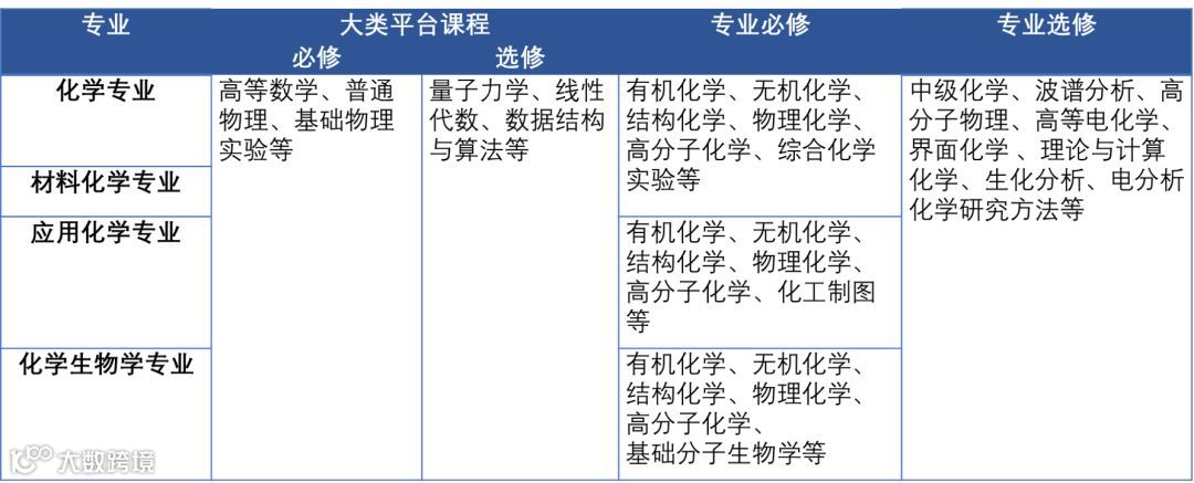 化学专业、材料化学专业、应用化学专业和化学生物学专业。