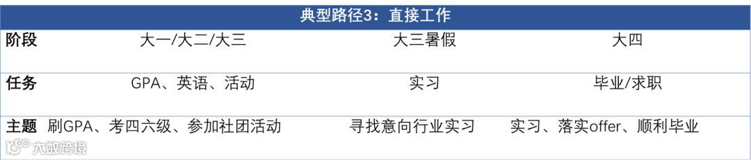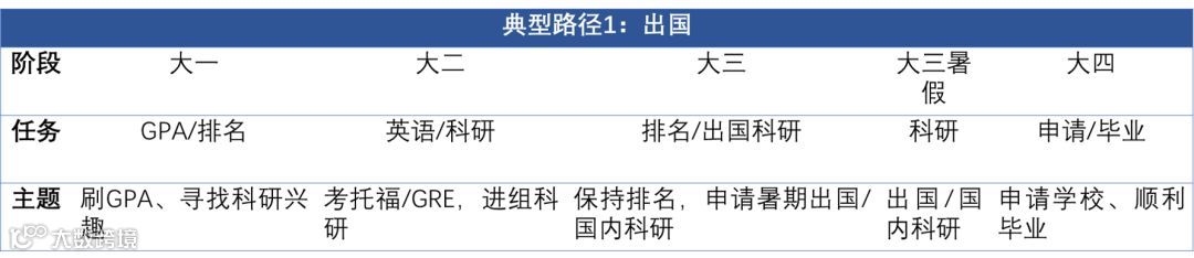 →大一/大二/大三:刷GPA、刷英语(以四六级为主,托福雅思可考虑)、参加社团活动;
