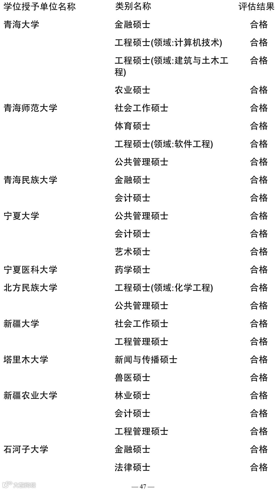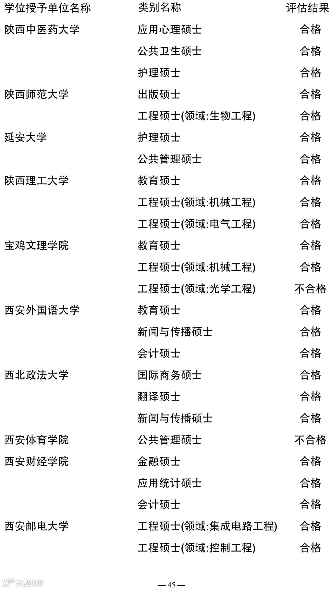 结果显示,不合格学位点共有31个,全部为硕士学位点;限期整改学位点共有43个。此外,共有18所高校主动放弃学位点18个。