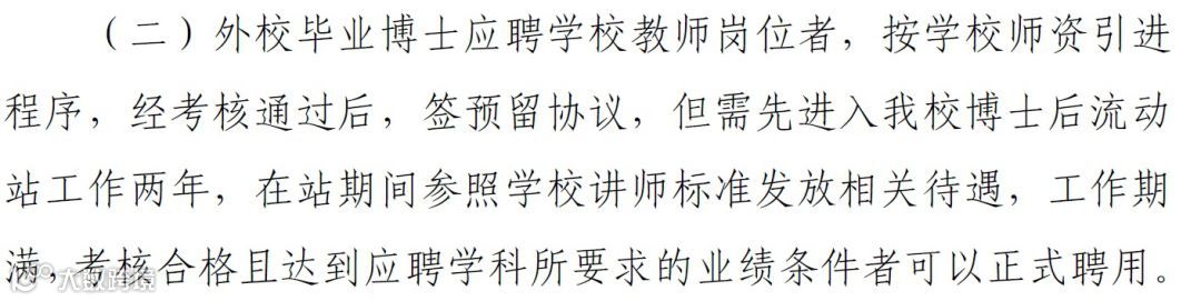 根据国家统计局数据,自2013年以来,全国高校每年约增加3万名专任教师,而每年博士毕业人数则有5万多名,且仍有增加趋势,另外还有三四十万名留学回国人员。这一两年开始,很多高校在招聘博士时都让博士做两到三年的师资博士后,但博士后出站能否顺利在该校任职就未知了,应该存在很大一部分淘汰率。若不能留下还需要找工作这会让就业更加困难。(下图是某高校的招聘信息中一条)