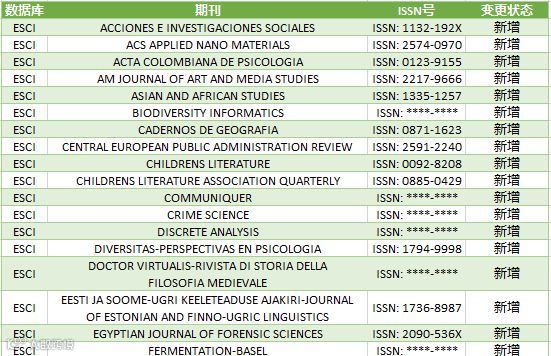 表4:ESCI期刊数据库的更新动态--201903