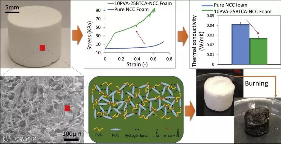 在华盛顿州立大学团队开发的新材料中,从木浆中提取出的植物纤维素纳米晶体约占75%。研究人员在植物纤维素纳米晶体中加入另一种高分子材料聚乙烯醇,使其合成一种独特结构,实验显示其隔热性比聚苯乙烯泡沫塑料更佳。