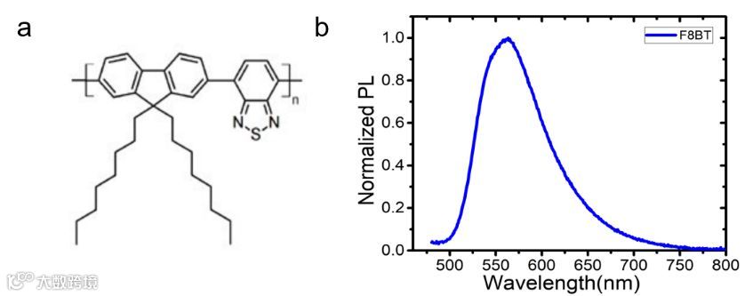 图1. a.聚合物F8BT的化学结构式;b.F8BT的PL谱。