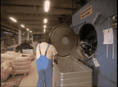 洗后的牛仔被放到这个转筒里,让里面的石子儿漏出来。