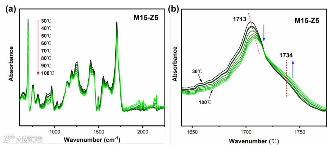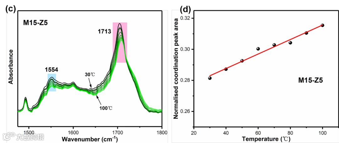 同时作者也利用变温红外表征了Zn2+盐键在不同温度下的特征峰峰位变化,证明其解离与重构。
