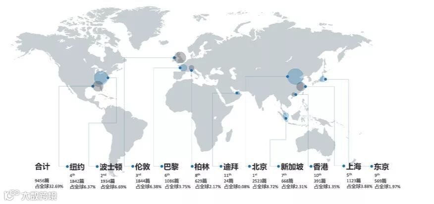 全球城市是创新之源。全球所有高被引文献中,有32.7%同11大代表性全球城市相关。