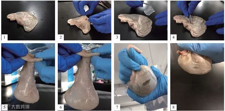 图2 用PACG-BG水凝胶贴片修补破损的兔胃,灌注模拟胃液放置3天后,水凝胶仍可牢固地黏附在胃的表面,未发生液体的泄漏