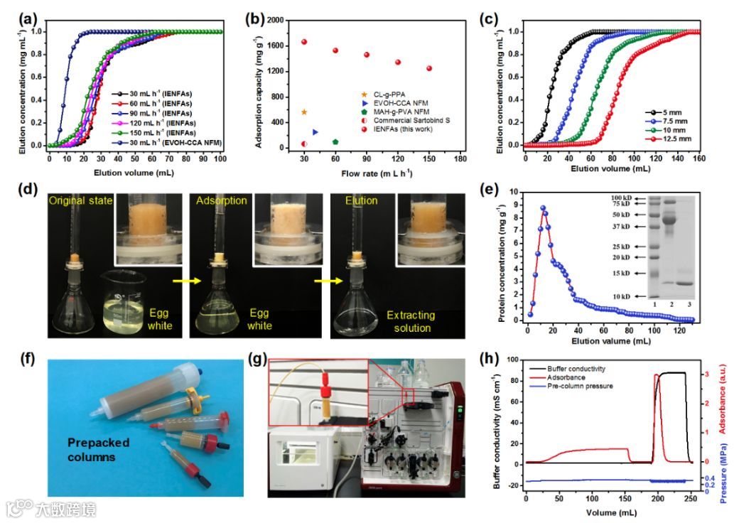 离子交换纳米纤维气凝胶的动态蛋白质吸附性能及其实际应用性能