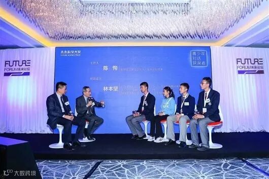 今年峰会继续设置了大奖获奖者与青少年对话的环节。大奖获得者李家洋、马大为、冯小明、周其林、林本坚五位科学家与来自中小学的青少年们,展开关于生命研究、物质研究、计算机研究等三个方向的交流。
