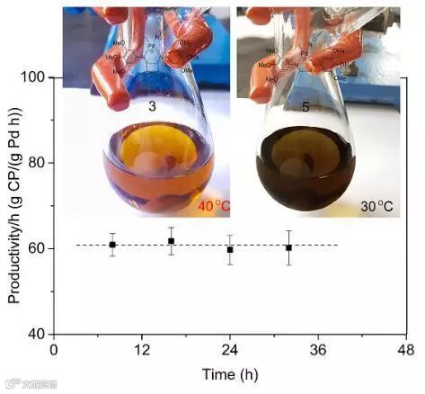 图2. α-二亚胺钯催化苯乙烯/CO共聚稳定性研究