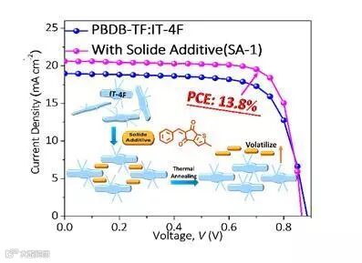 图1可挥发固体添加剂的工作机制示意图以及所优化的器件性能