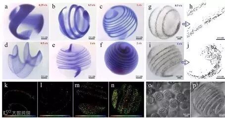 用这种方法,实验室还做出了玫瑰花、带螺旋的微球、太极等造型的颗粒,直径在200微米左右。总之,可以操纵细胞任意形成特定的“队形”。