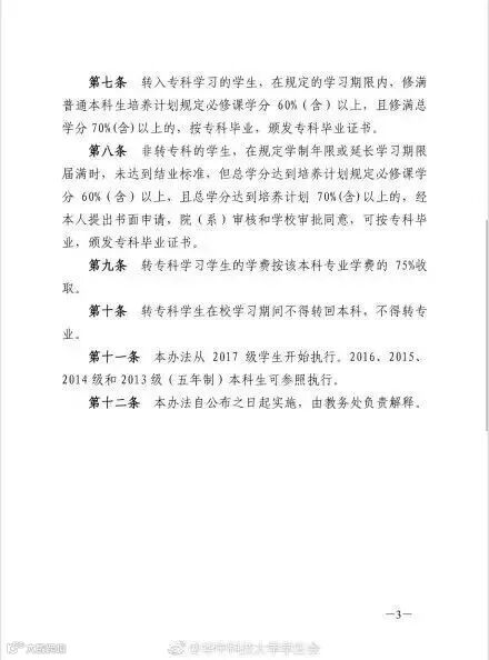 本科生还能变成专科生?这是真的!今年,华中科技大学有18名学生因学分不达标从本科转为专科。