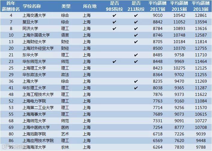 有些知名985高校如:武汉大学,湖南大学,重庆大学等排名比较靠后;但不能表明这些学校的毕业生工作不好,这样的工资水平在当地城市还是有很强竞争力的。