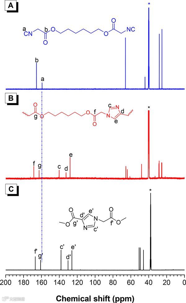M2(A)、PII(B)和模型化合物2(C)的13C NMR谱图