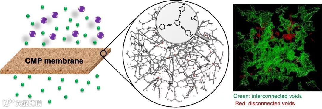 膜分离过程是一种在选择性膜两侧施加压力差,使得待分离物质选择性通过膜从而实现分离的过程,这一过程的核心技术是高效、高选择性膜材料。这一技术在水纯化或者海水脱盐方面已经有了很成熟的应用,利用聚酰胺等聚合物材料的薄膜实现杂质或离子去除。然而,其在有机体系的应用相对滞后,这是因为大部分传统的一维聚合物材料在有机溶液中不稳定。其次,传统一维聚合物薄膜没有永久性孔,导致分离速度非常低下。