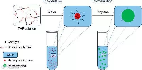 在这个工作中,作者通过将催化剂封装在聚合物胶束内,在水相中催化聚合聚乙烯。与传统的微乳液技术相比,封装后的催化剂具有更好的稳定性和催化性能。为工业改进乳液聚合提供了一种新的方法。