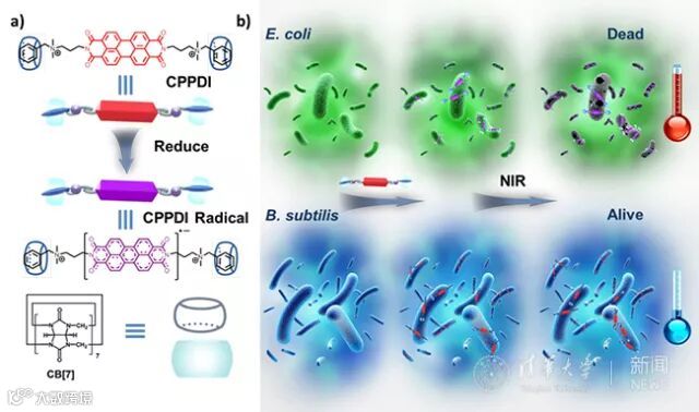 12月18日,清华大学化学系张希教授研究团队在德国《应用化学》(Angew. Chem. Int. Ed.)期刊发表题为《细菌原位诱导的超分子自由基阴离子用于选择性光热治疗》(Supramolecular Radical Anions Triggered by Bacteria In Situ for Selective Photothermal Therapy)的研究论文,报道了利用超分子复合物对细菌的化学响应,原位产生超分子自由基,构筑了具有优异选择性与高效抗菌性能的新型超分子光热材料,实现了对细菌高效的选择性光热杀灭。