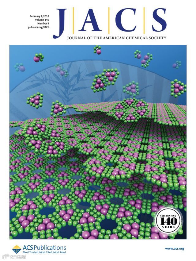 这项研究的原创性和新颖性在于,通过合理地设计组装基元的结构,成功地构建了难以构建的蜂巢结构,并通过模拟阐明了过程与机理。故此,这篇文章被JACS选为2018年140卷第5期的封面文章。与此同时,在该期的Spotlights刊文介绍如下:“由于其独特的蜂窝状结构石墨烯和过渡金属硫化物不同于其他二维材料,因而具有优异的性能与功能。模拟表明,胶体粒子自组装可能是一条很有前途的途径,为多样化组装的周期表提供新二维结构范例,但是实验的确认仍然艰难。王维、燕立唐、Goran Ungar以及同事们详细介绍了用簇-簇分子自组装制备人造石墨烯单层膜的方法。该分子簇由一个多金属氧酸盐通过一个平面绳连接四个有机硅笼上而形成。