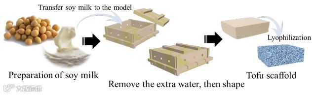Figure 1. Schematic illustration of developing tofu scaffolds and soybean protein scaffolds