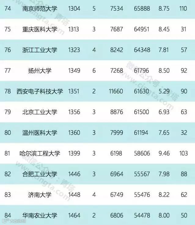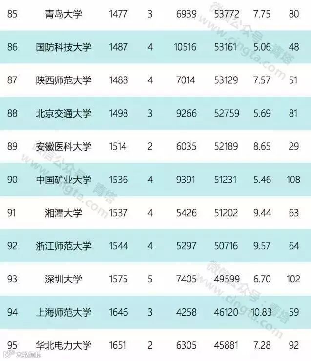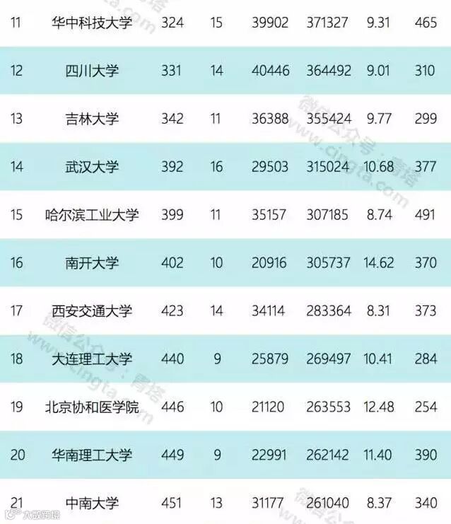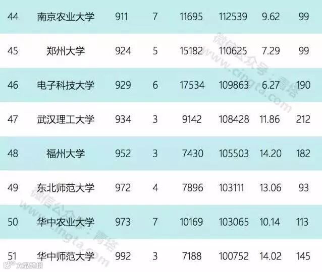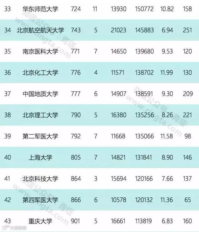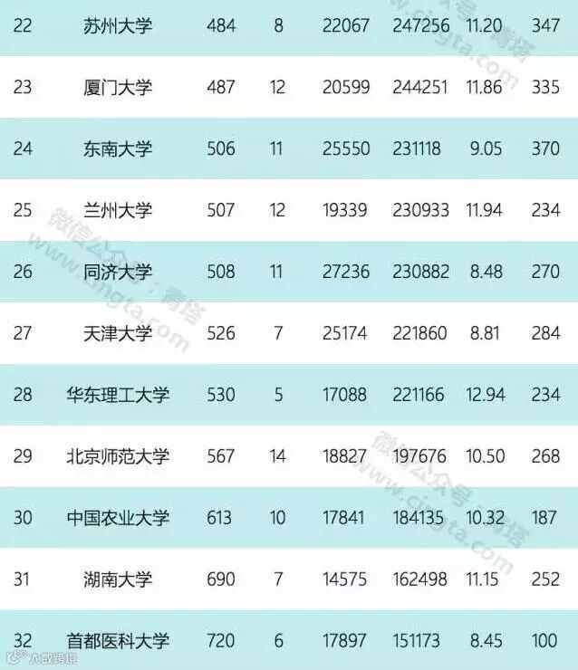 2017年11月的各校ESI综合排名情况如下(按照各高校论文总引用次数进行排名;中国地质大学、中国石油大学和中国矿业大学三所高校并没有区分两地办学的情况):