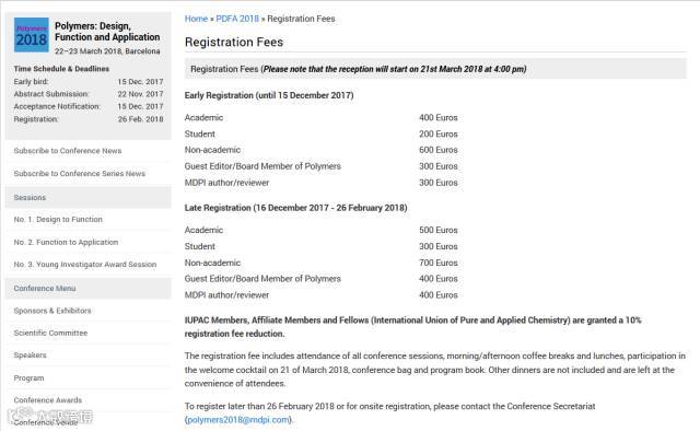 Polymers第一届会议即得到欧洲材料研究协会(European Materials Research Society)和国际纯粹与应用化学联合会(International Union of Pure and Applied Chemistry)的认可和背书。(https://iupac.org/event/polymers-design-function-application/