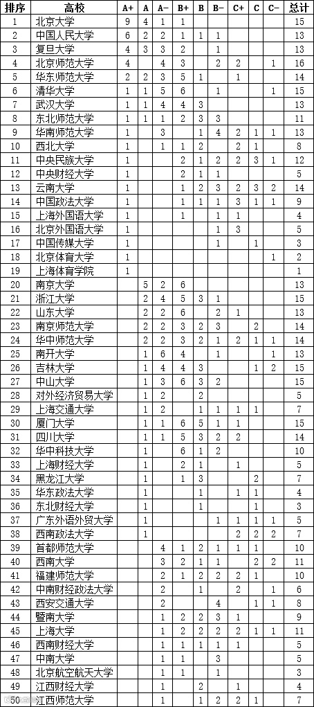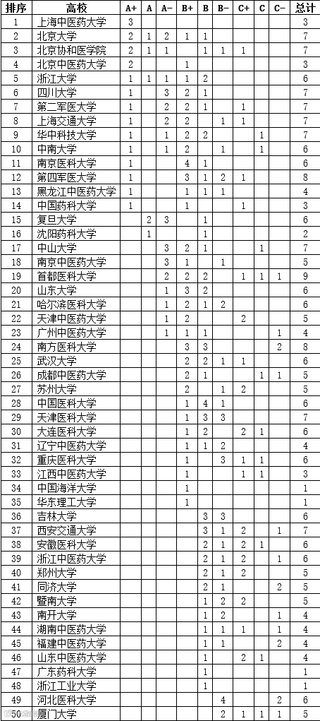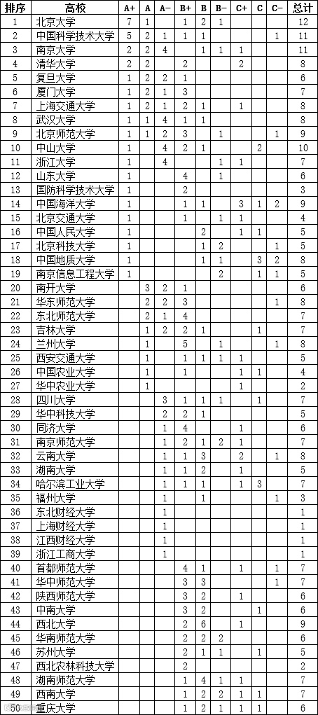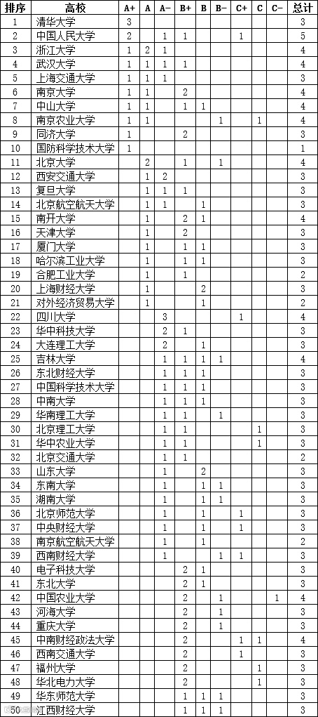 1. 选取在半数以上领域(4个)内具有学科获得A+~C-分档的高校进行排序