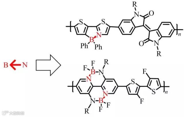 有别于采用酰亚胺结构设计n型高分子半导体的传统思路,中国科学院长春应用化学研究所刘俊课题组,从硼氮配位键降低共轭高分子LUMO/HOMO能级的基本原理出发,2015年提出了采用硼氮配位键设计n型高分子半导体的策略。在此基础上进行分子设计,发展出两类含硼氮配位键的n型高分子半导体受体材料,并将全高分子太阳能电池的光电转换效率从0.1%提升到6.3%。该工作为发展n型高分子半导体提供了新材料体系,系列成果已发表论文15篇。