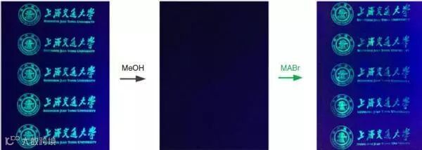 导师李良长期从事半导体纳米晶合成化学及半导体纳米晶在新能源、照明显示以及环境污染物治理中应用的研究工作。他熟知,在信息安全领域,荧光染料、配合物、量子点等使用广泛,它们主要运用在光、电、机械力等外界刺激下会发生荧光的变化实现光学信息的存储和防伪等应用。但是大部分此类材料的缺点在于由于自身光学性能的原因,导致其安全保密性相对较低。李良大胆设想,新的合成方法也许能解决这个问题。用于转化反应的MOFs本身无荧光也不吸收光,不受外界刺激(如光激发)的影响,很好地满足了隐形性和安全性的要求。沿着这个思路,张从阳在后续实验中利用喷墨打印机,在墨盒里装上了以MOFs前驱体配制的墨水进行打印,即将MOFs用作隐形墨水通过喷墨打印等印刷手段进行信息存储和加密。由于MOFs良好的安全性能,所记录的信息无法通过常规手段读取出来。然后对其进行卤化盐反应,MOFs中很快产生荧光钙钛矿纳米晶,即完成信息读取和解密过程。同时,由于钙钛矿材料的离子特性,在极性溶剂(如甲醇)处理之后,所产生的荧光钙钛矿纳米晶可以很快淬灭,并直接可以再次用于新的转化过程。值得一提的是,由于MOFs具有很好的化学稳定性,直接用MOFs记录的信息可以长期存储,用来重复解密和加密。至此,新的加密解密隐形墨水正式宣告成功。