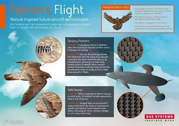 BAE系统公司和城市大学研究人员表示,游隼是世界上飞的最快的鸟,能以非常陡峭的角度进行高速俯冲捕食,其生理机能表现出的机械性能,可改善飞机的空气动力学,提升飞机的安全性和燃油效率。此项研究将为航空航天业带来真正意义的创新与效益。
