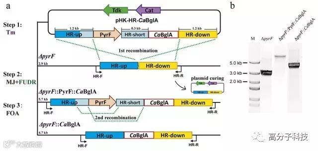 图1. 热纤梭菌重组菌株DSM1313::CaBglA的构建及验证