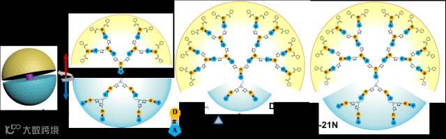 该课题组设计了两种具有不同排列方向生色团的枝状结构:一种是生色团的偶极矩沿着中心向末端排列;另一种则相反,生色团的偶极矩沿着末端向中心排列。这两种树枝状结构很像自然界中存在的“树冠”和“树根”。而这两种不同的树枝状结构连接在一起就组合形成了Janus型树枝状分子。