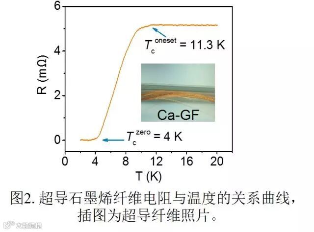 钙插层石墨烯纤维是第一个宏观碳质超导纤维,其超导转变温度为11 K,与商用NbTi超导线相当。随着制备工艺的改善,其超导转变区间会进一步变窄,超导转变温度还会进一步提升。这种新型轻质超导纤维在低温物理、医疗磁共振成像、超导量子干涉、未来电力传输、航空航天等领域具有广阔的应用前景。
