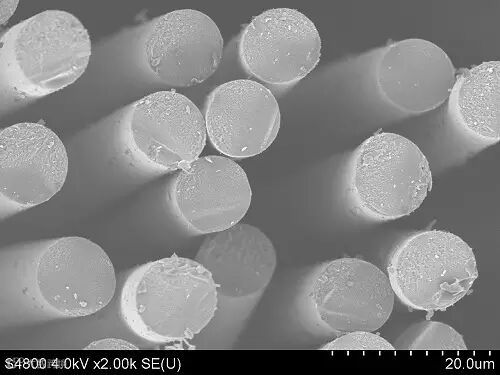 但是,木质素基碳纤维的研究与开发目前仍然面临着许多挑战,如满足碳纤维制备要求的“三高”(高纯度、高分子量和高碳含量)木质素原料的供应体系尚未形成,木质素自身纺丝成型极其困难。木质素是一种三维网状的无定型聚合物,分子量较低且分布很宽,在纺丝过程中难以承受较大的牵伸张力,通常只能制得直径较粗、取向较低的木质素原丝。中国科学院宁波材料所特种纤维团队欧阳琴副研究员等人采用酯化和自由基共聚两步法改性技术制备了一种具有良好可纺性和热稳定性的木质素-丙烯腈共聚物。采用该共聚物和湿法纺丝工艺制得高质量的连续原丝,经热稳定化和炭化处理后,制得结构致密的碳纤维,为高效利用木质素和进一步提高碳纤维的力学性能奠定了重要基础。